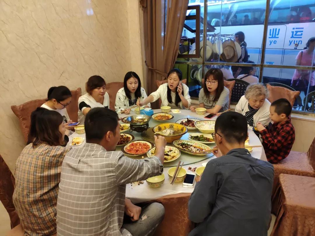 民以食为天。经过了下午的长途跋涉,大家好像能吃下一头牛,丰盛的晚餐开始了!在美味佳肴中,大家进一步互相交流情感。