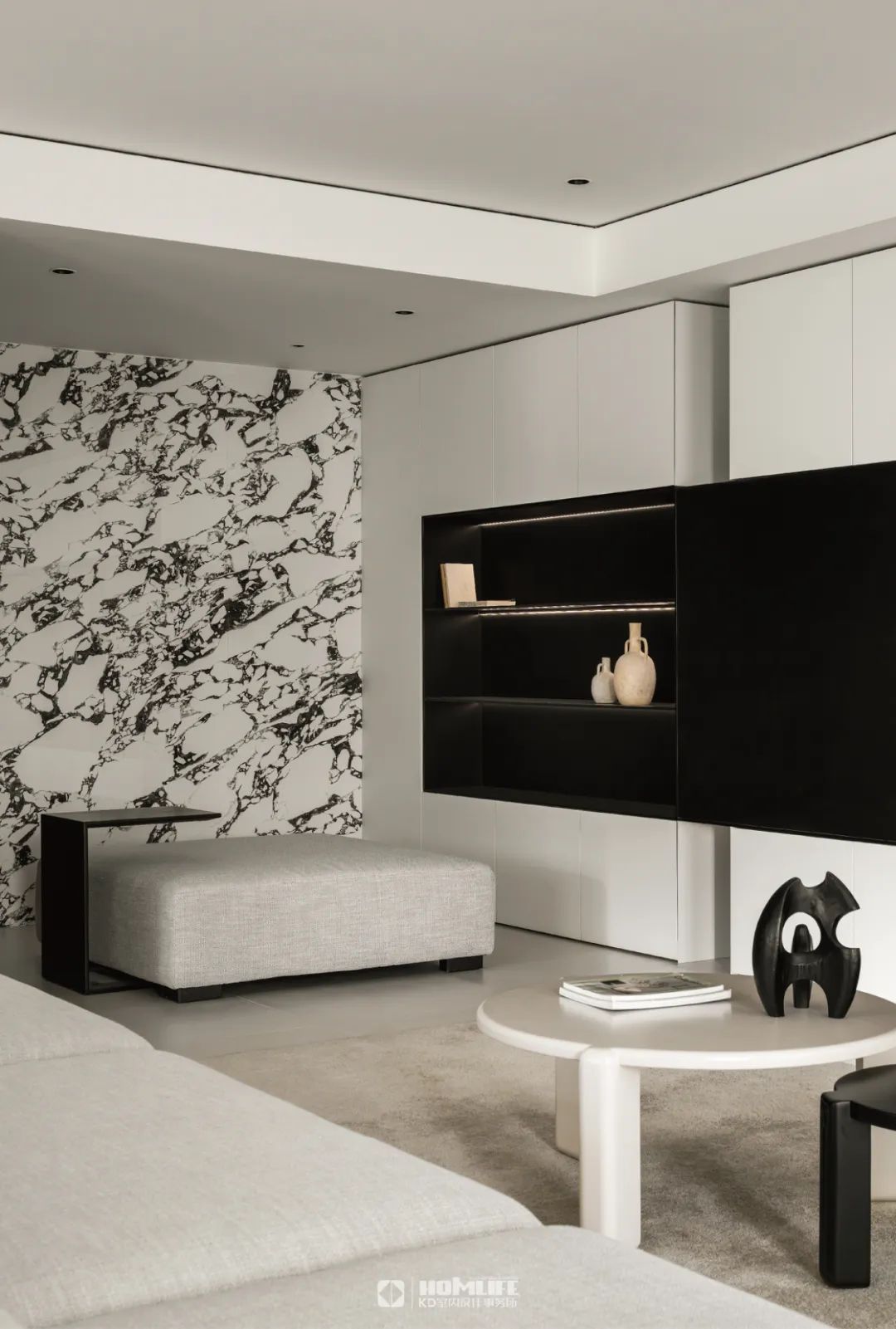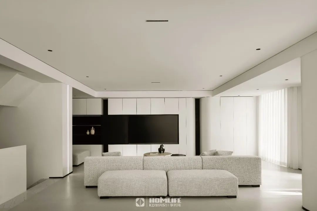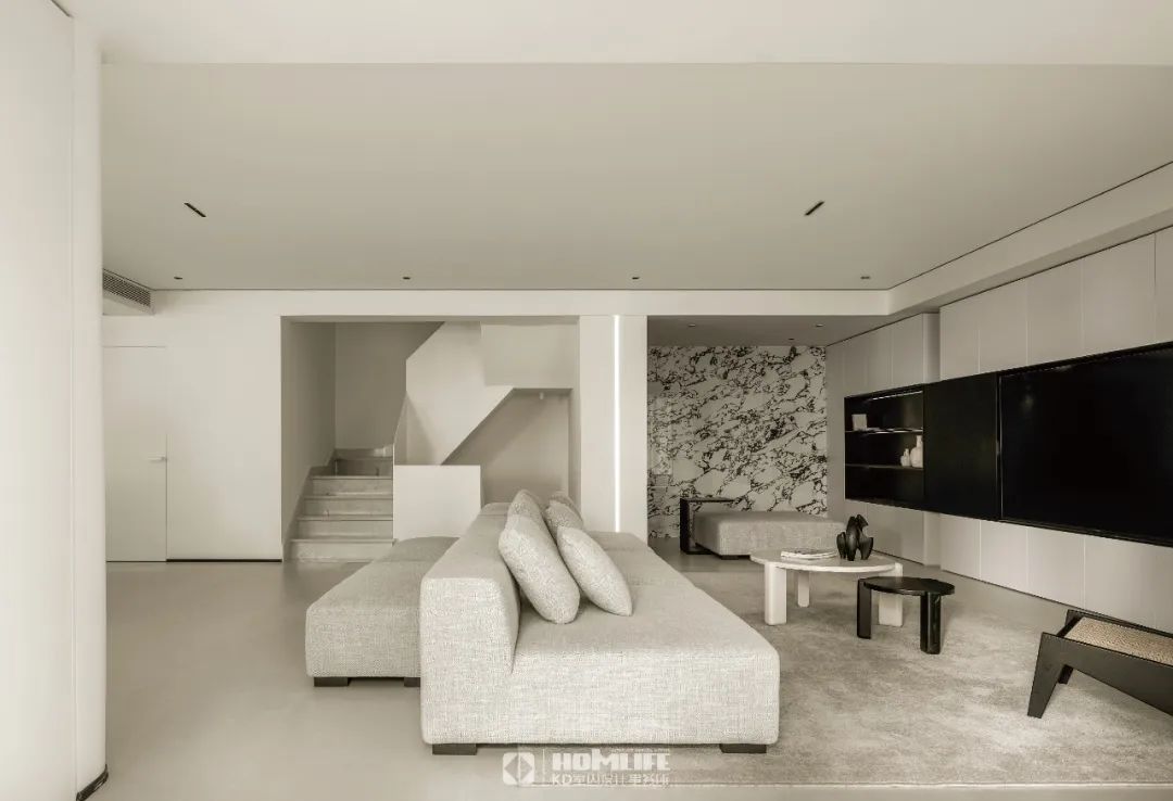 了解屋主的需求和对生活的期许后,我们重新梳理空间结构。在设计中将负二层挑空,让空间更加通透大气;将客厅、餐厅、阅读区安排在一层,流畅的动线让大家又能够一起交流的公共空间,不同材质交融增加层次感和丰富性,生活的惬意舒适成了一眼可见的标签。